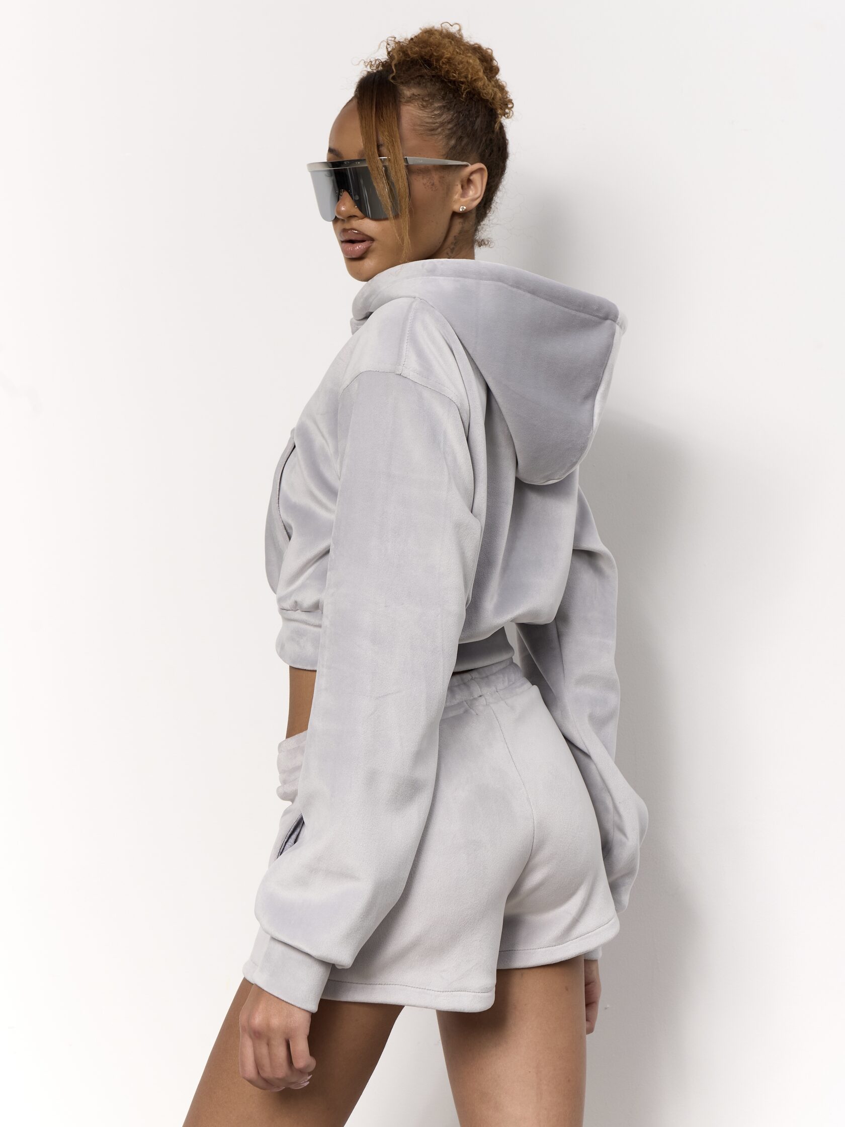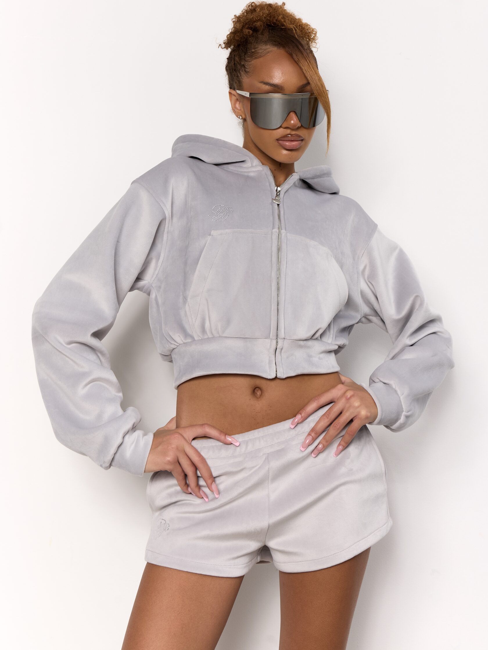 Плотный бархатистый хлопок Монограмма из страз высокого качества Укороченный оверсайз силуэт Фирменная фурнитура с уточкой Длинный рукав