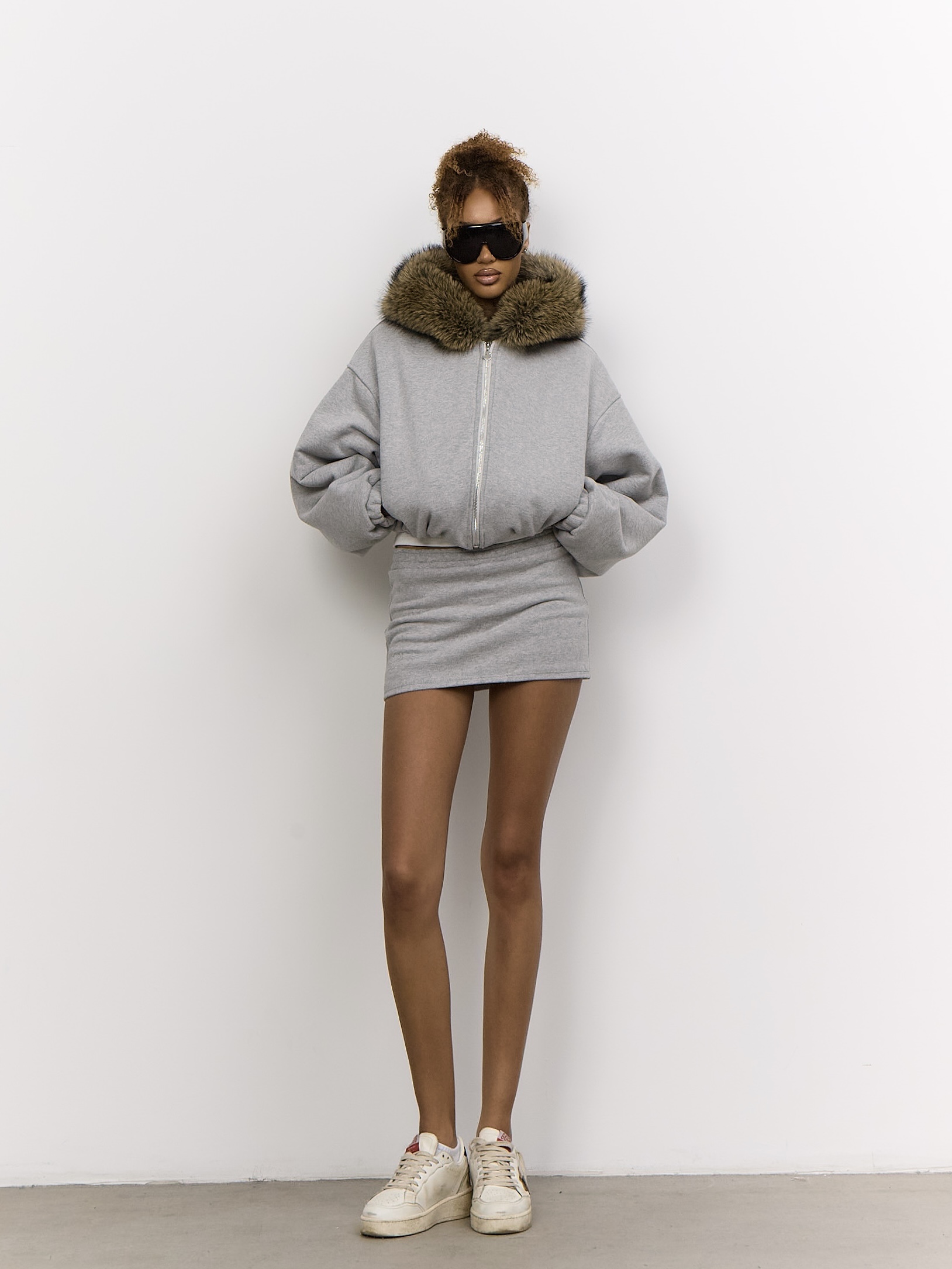 Плотный бархатистый хлопок Воротник - стойка Монограмма из страз высокого качества Укороченный оверсайз силуэт Фирменная фурнитура с уточкой Длинный рукав